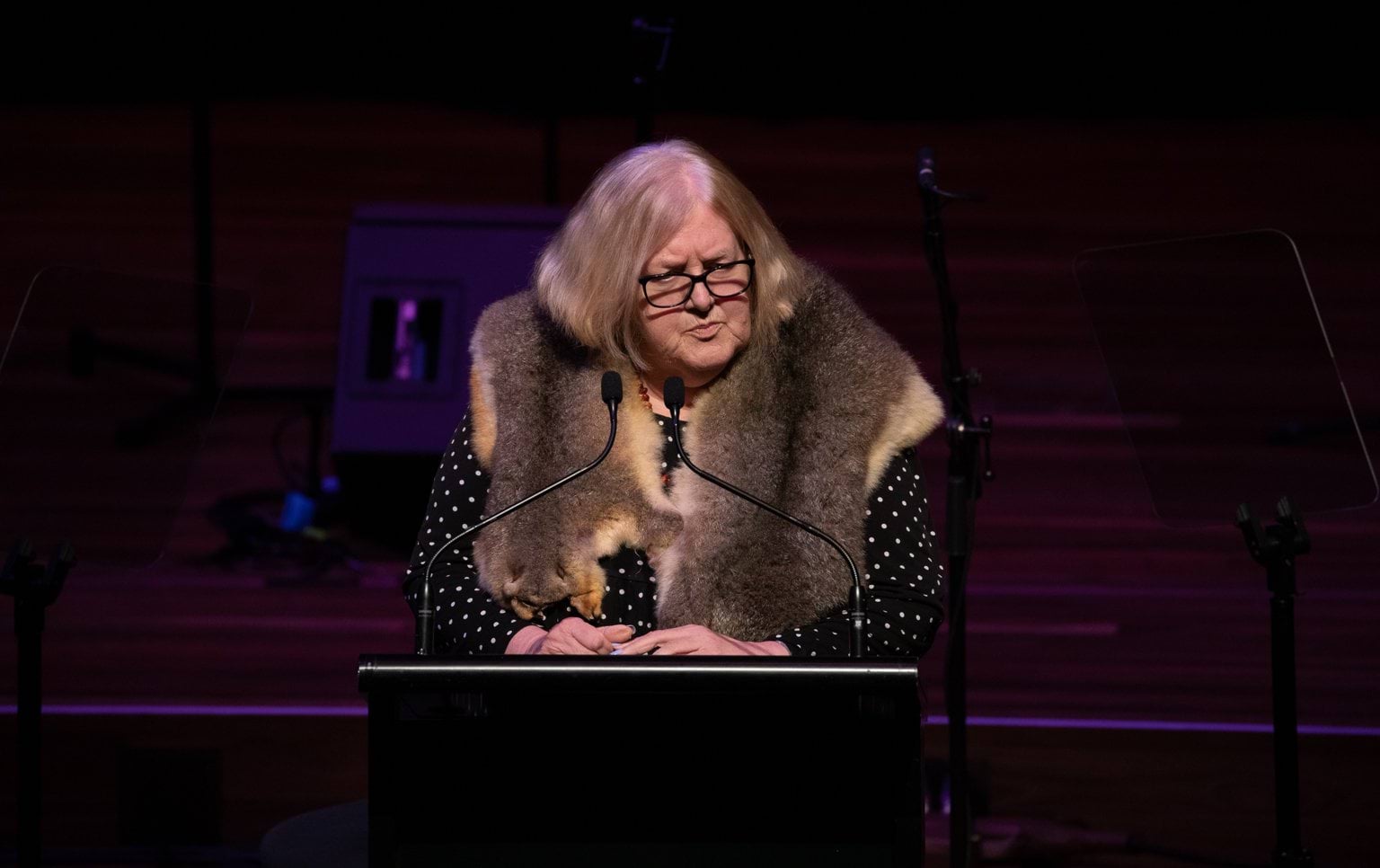 Deborah Cheetham AO then performed Long Time Living Here in her native Yorta Yorta language accompanied by the Melbourne Symphony Orchestra string quartet.