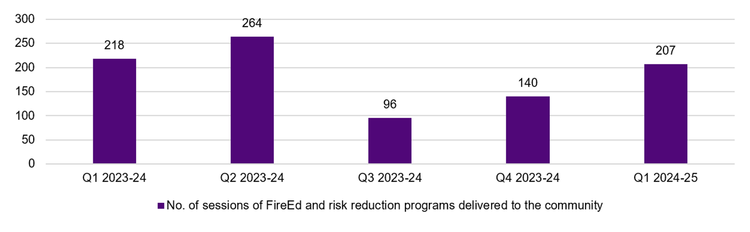 - FRV: No. of sessions of FireEd and risk reduction programs delivered to the community (measure 1.1.2a).