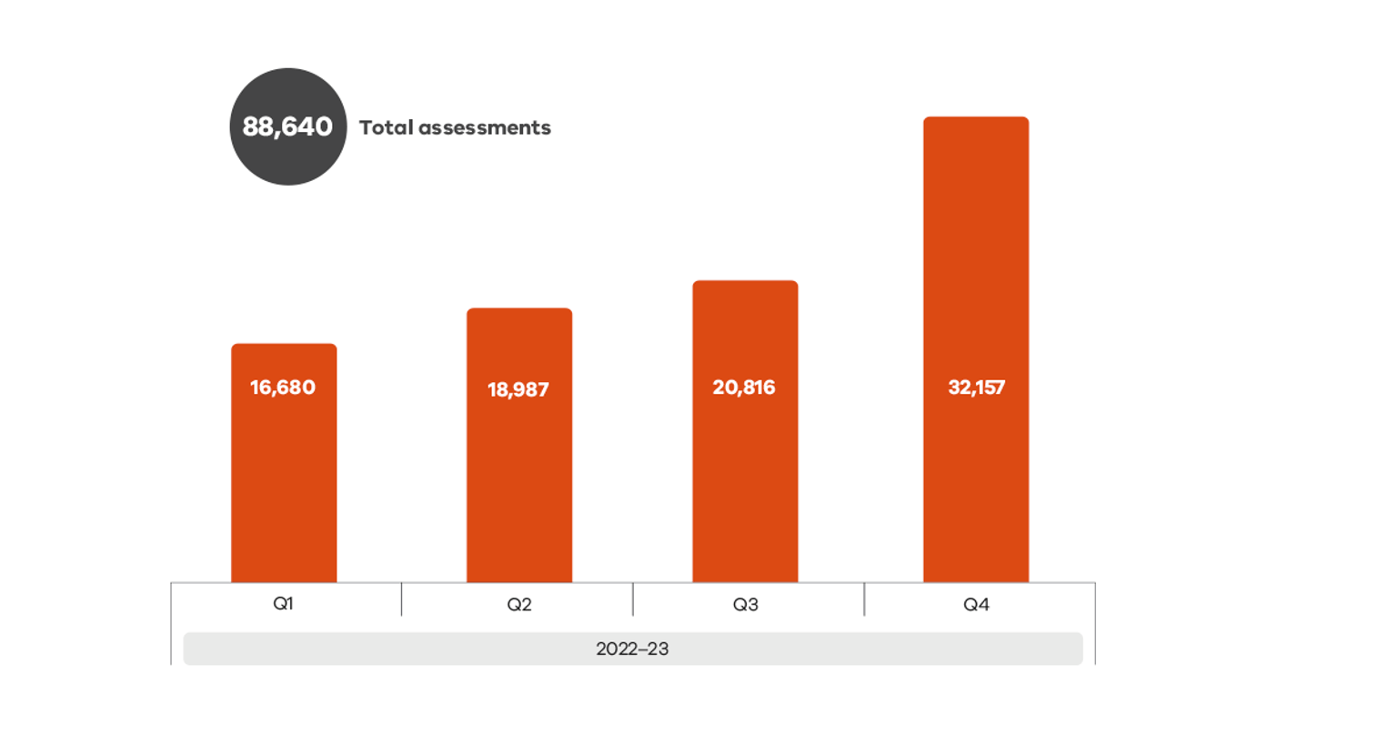 The number of assessments undertaken by practitioners increased by 37.5% compared to 2021-22. While the increase in risk assessments is mostly due to the commencement of the three new The Orange Door areas in 2022-23, confidence in undertaking risk assessments and information sharing under MARAM continues to grow.