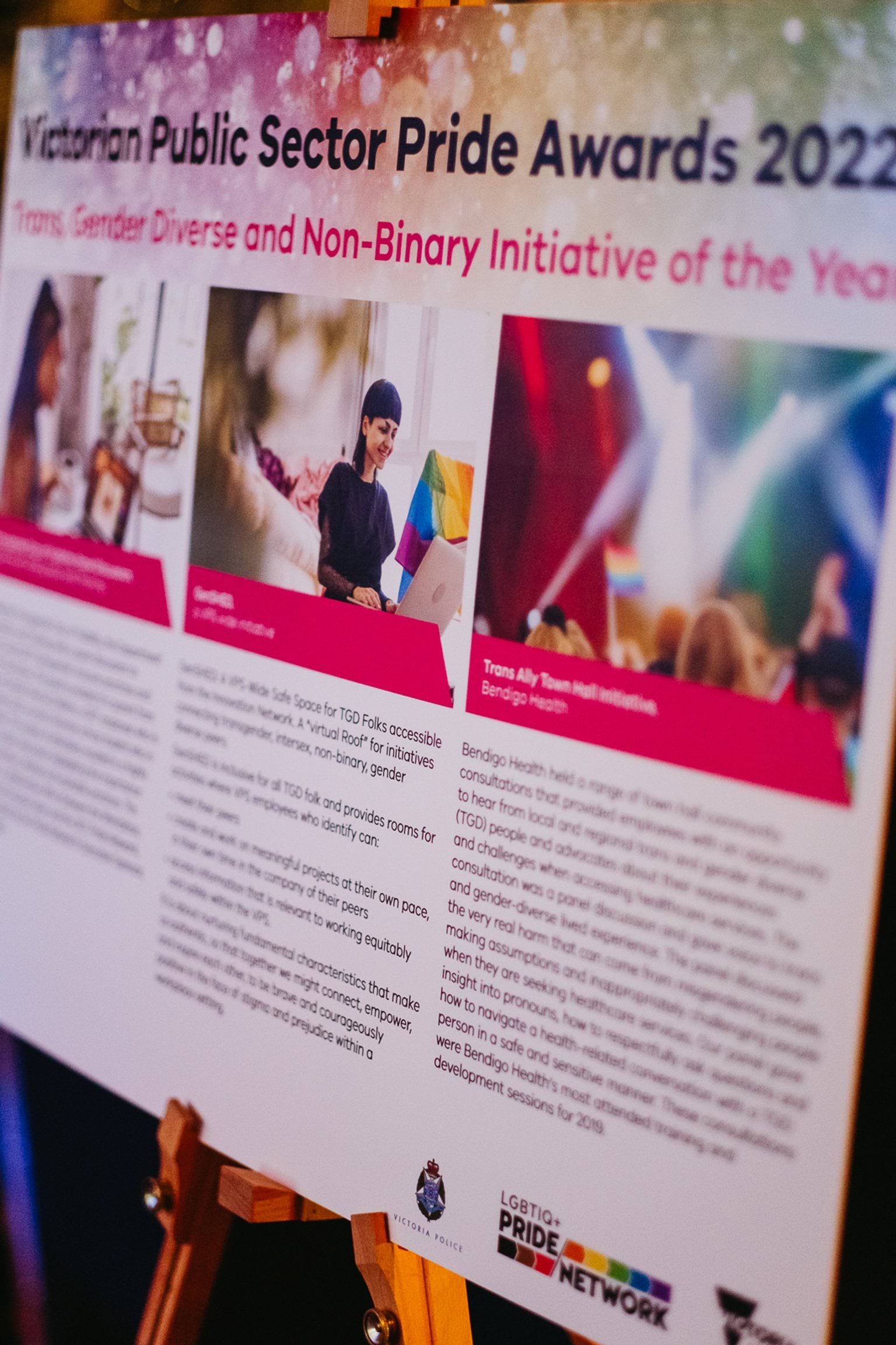 The Victorian Public Sector (VPS) LGBTIQA+ Pride Awards honour and recognise contributions to LGBTIQA+ workplace inclusion that have occurred across the sector.