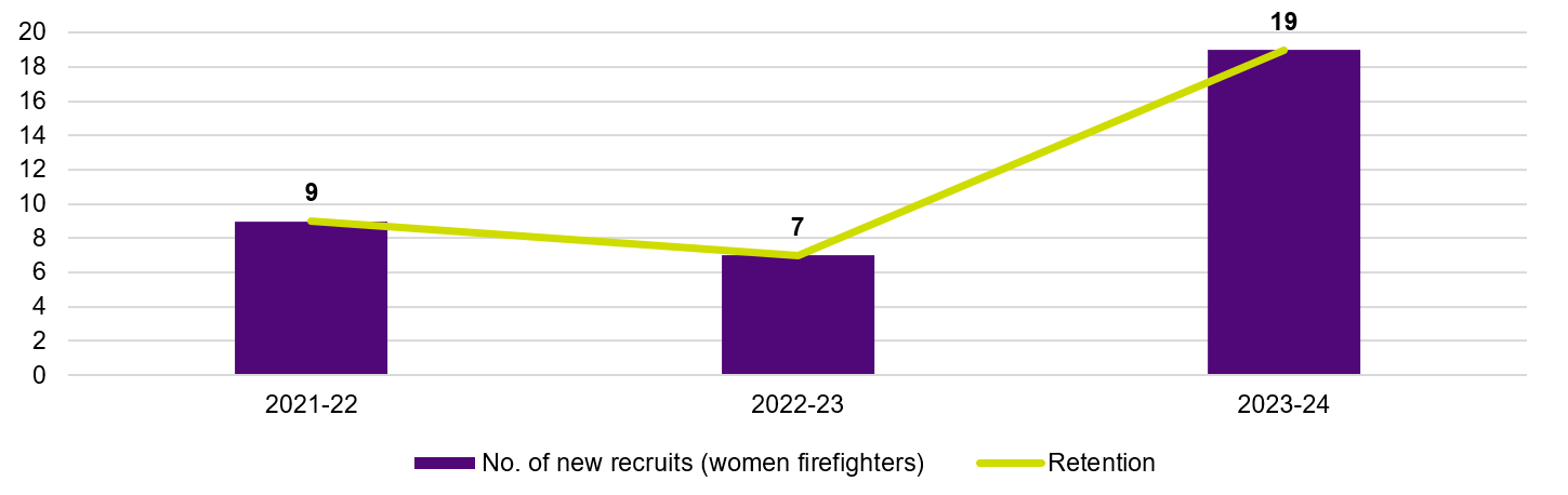 In 2023-24, FRV recruited 19 new women firefighters and maintained a 100 per cent retention rate of these new recruits.