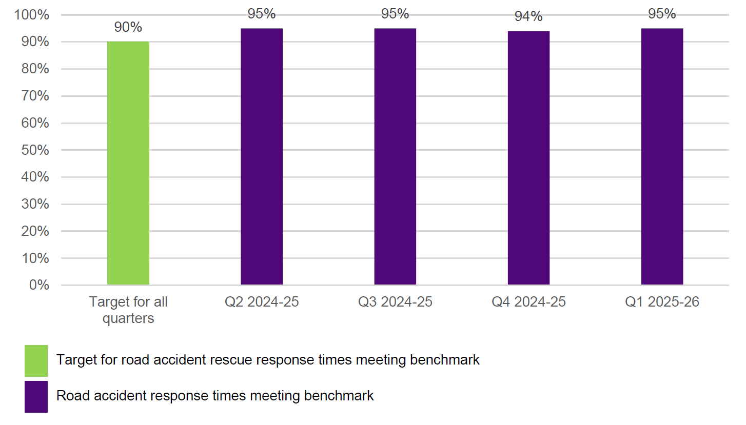 CFA: Road accidents rescue response times meeting benchmark (target 90%)