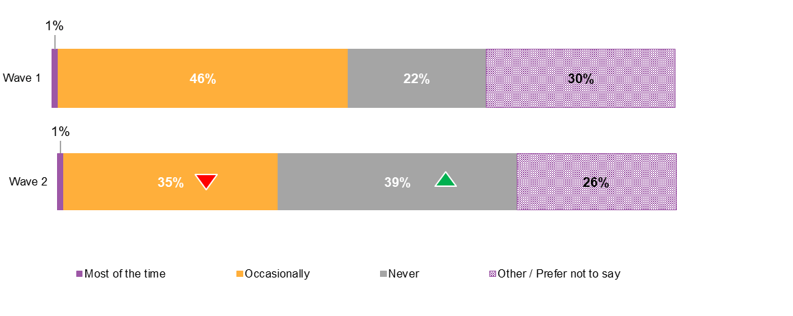 IF OCCASIONALLY, MOST OF THE TIME OR ALL OF THE TIME ASK Q31, ELSE SKIP TO DISQ32