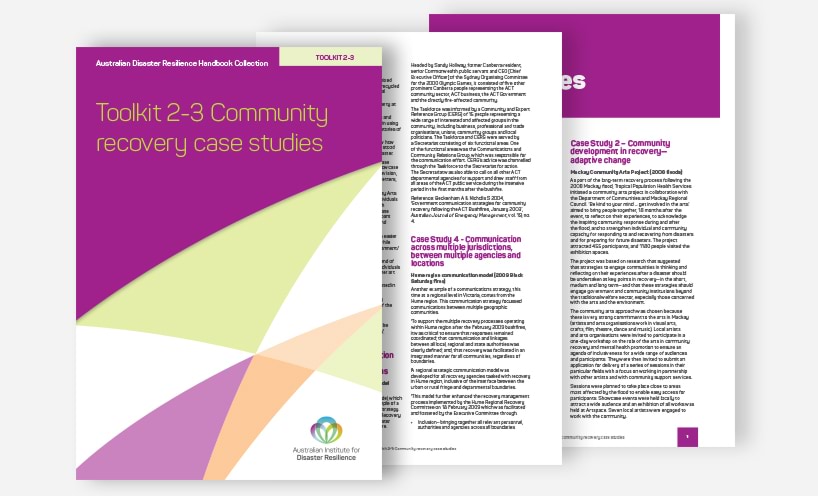 This resource is part of the Australian Institute for Disaster Resilience recovery collection.