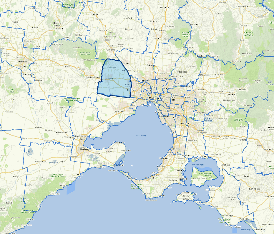 Aintree, Bonnie Brook, Brookfield, Burnside, Burnside Heights, Caroline Springs, Cobblebank, Deanside, Diggers Rest, Exford, Eynesbury, Fieldstone, Fraser Rise, Grangefields, Harkness, Hillside, Kurunjang, Melton, Melton South, Melton West, Mount Cottrell, Parwan, Plumpton, Ravenhall, Rockbank, Strathtulloh, Taylors Hill, Thornhill Park, Toolern Vale, Truganina and Weir Views.