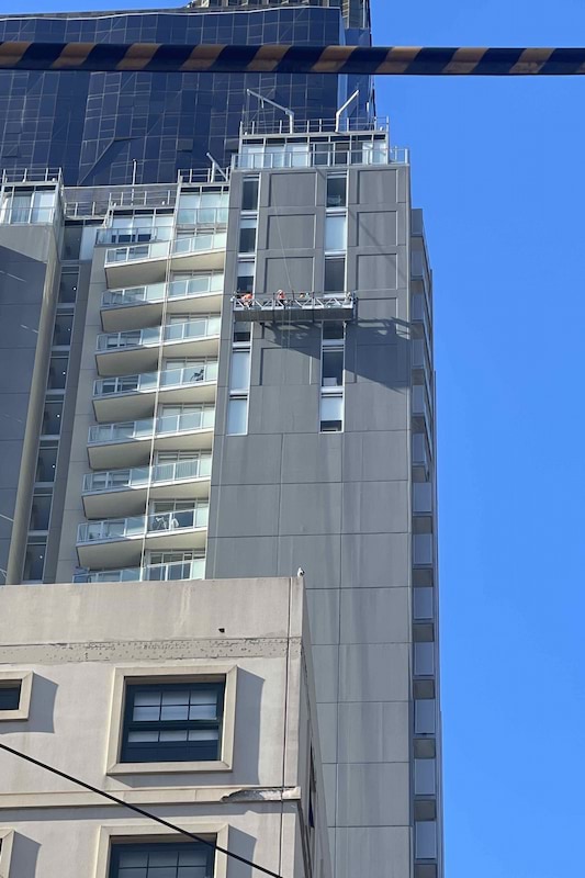 "A tricky component was accessing the cladding because the apartment balconies jut out from the side of the building, so a swing stage couldn’t be utilised in those areas. In some parts, abseils were used to access the exterior of the building. Otherwise, workers would work from the balconies. Being a bigger building, gaining access to apartments to work on the balconies was often challenging. To overcome this we did mailbox drops and put flyers underneath apartment doors to communicate with residents and organise balcony access.