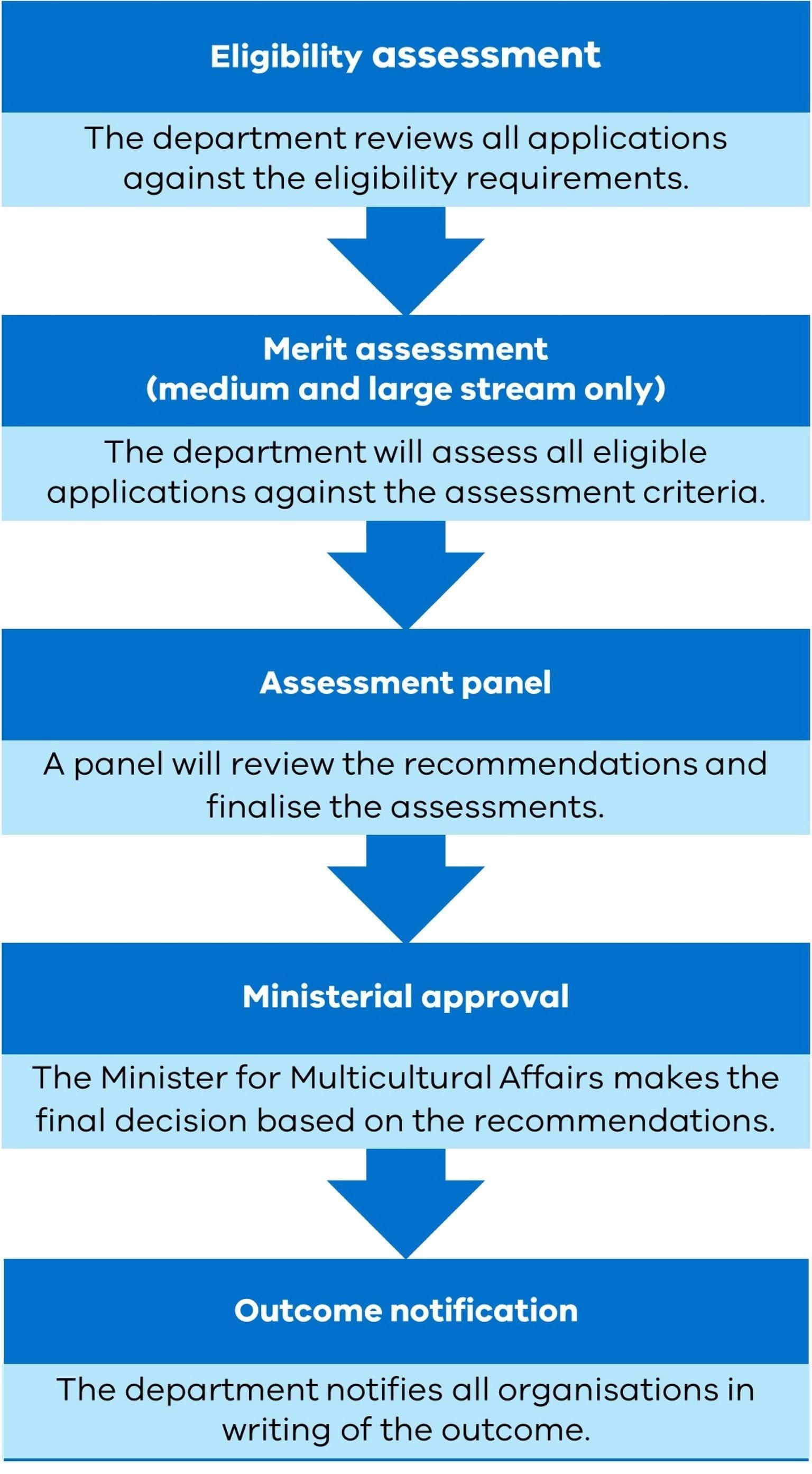 - The medium and large stream applications that are eligible, will also be assessed on merit using the criteria listed in the table below.