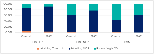 Note: ‘KGN’ is stand-alone Kindergarten; ‘LDC FP’ is long day care for-profit; ‘LDC NFP’ is long day care not-for-profit; ‘QA2’ is Quality Area 2.
