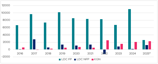 Note: ‘LDC FP’ is long day care for-profit; ‘LDC NFP’ is long day care not-for-profit; ‘KGN’ is standalone kindergarten.