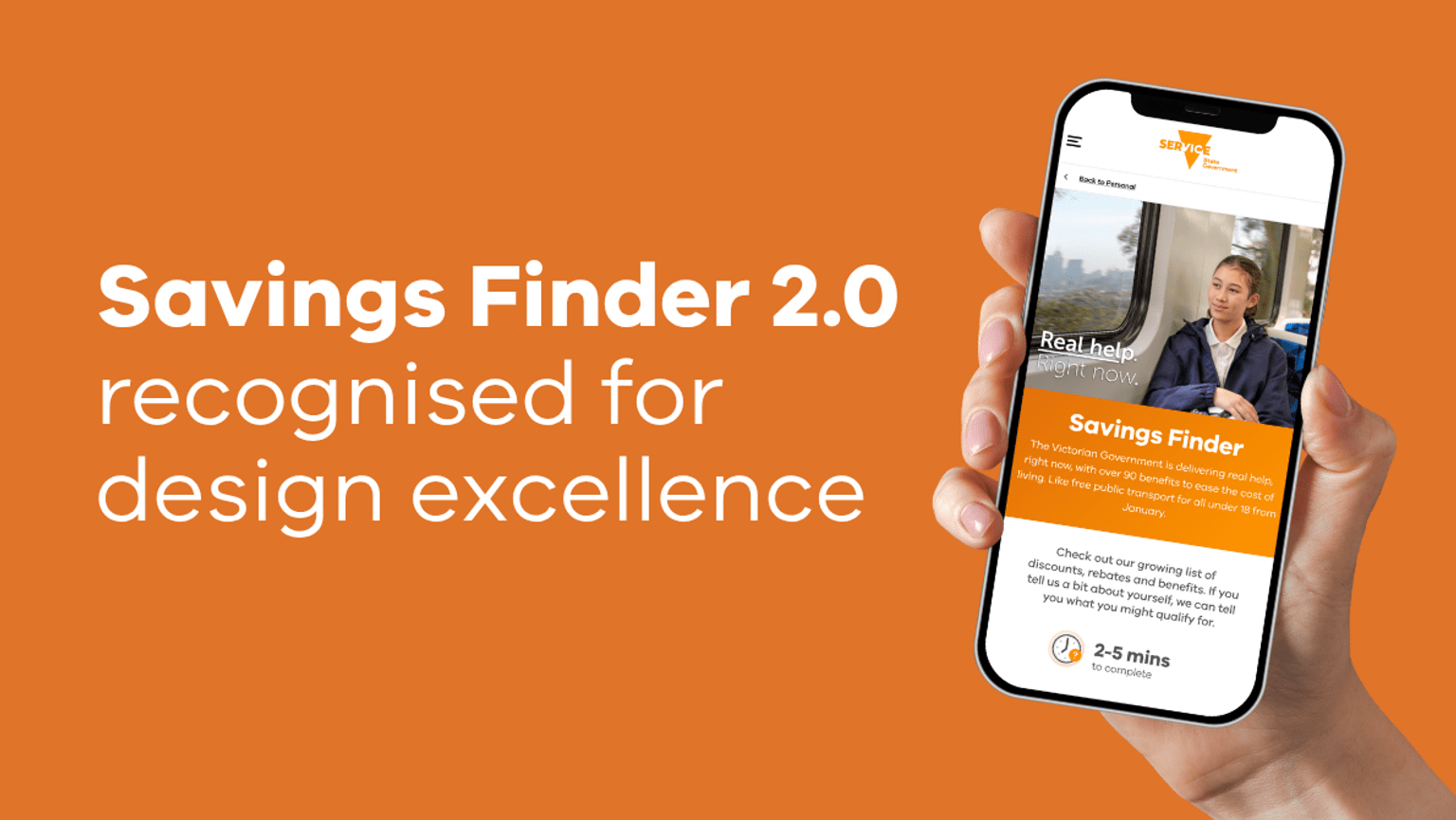 Savings Finder 2.0 is a tool that helps people find government rebates, discounts and support they may be able to access, and its simple, helpful design has now been recognised.
