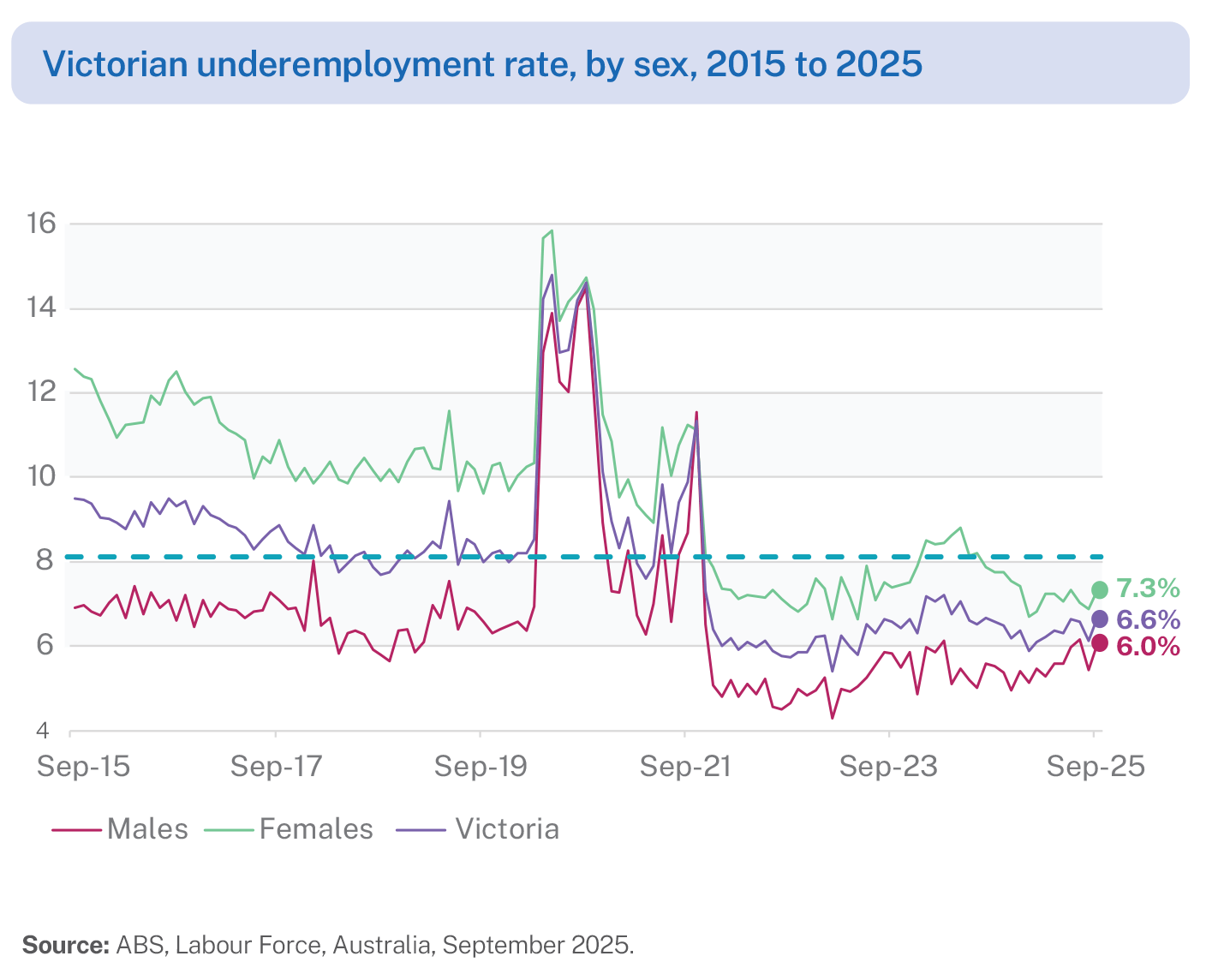 - This decline is primarily attributable to the drop in the female underemployment rate from 8.4% in March 2024 to 7.3% in September 2025. In comparison, the male underemployment rate fell marginally from 6.1% to 6% over the same period.
