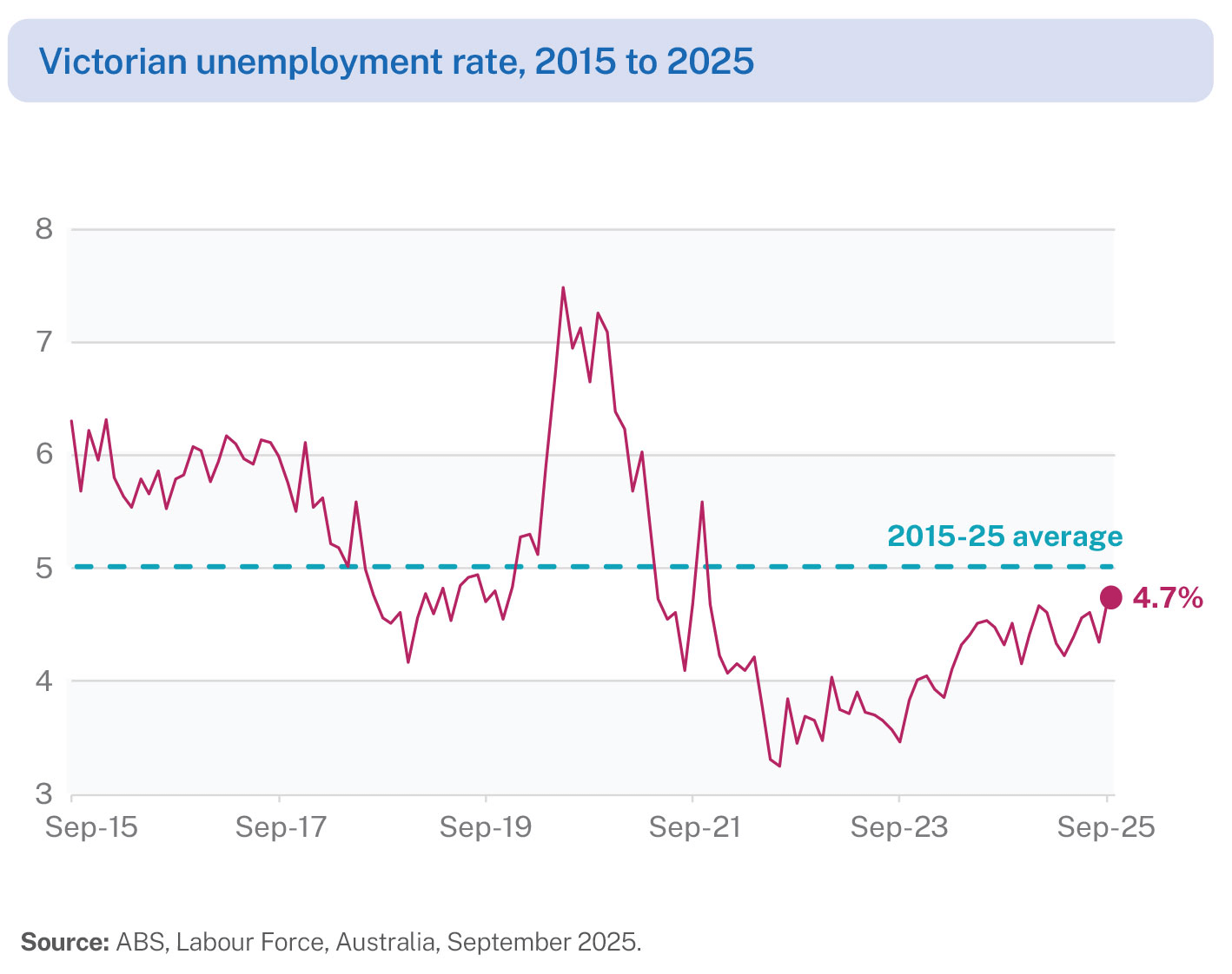 - Victoria’s unemployment rate was 4.7% in September 2025.
