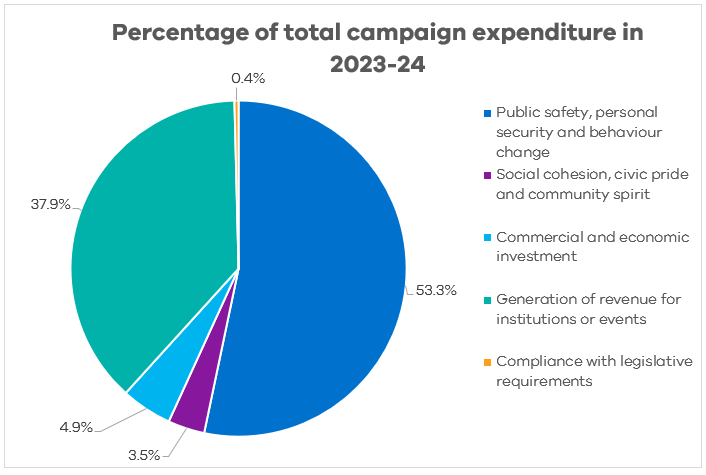 The chart below shows spending for each priority area as a proportion of the government's overall expenditure on campaign advertising for 2023-24.