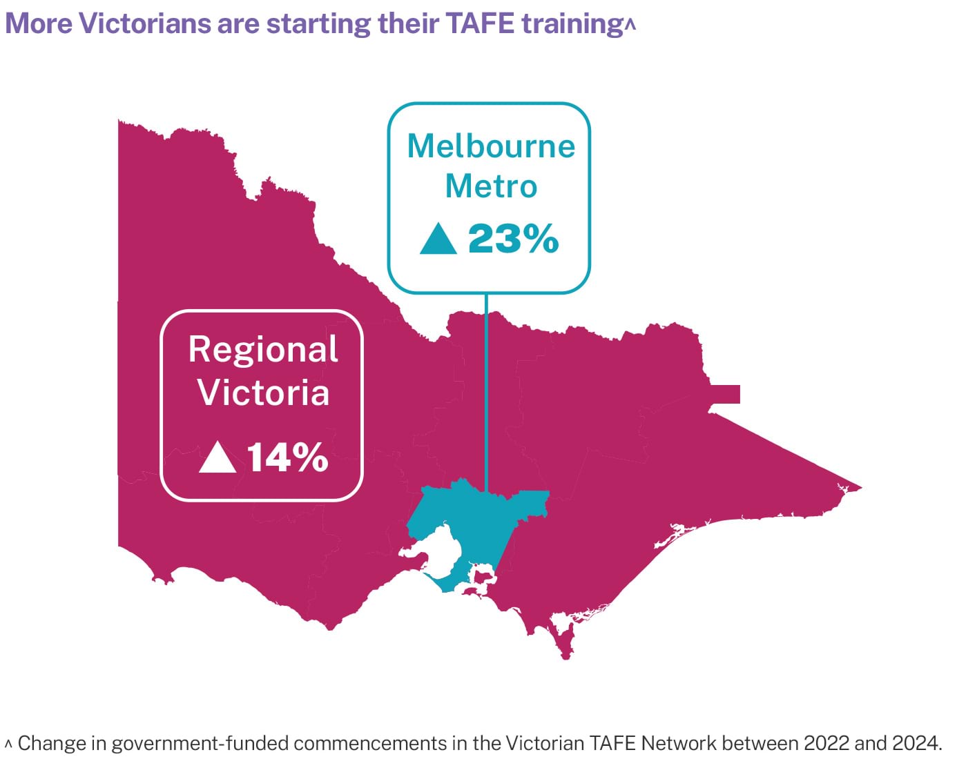 ^ Change in government-funded commencements in the Victorian TAFE Network between 2022 and 2024.